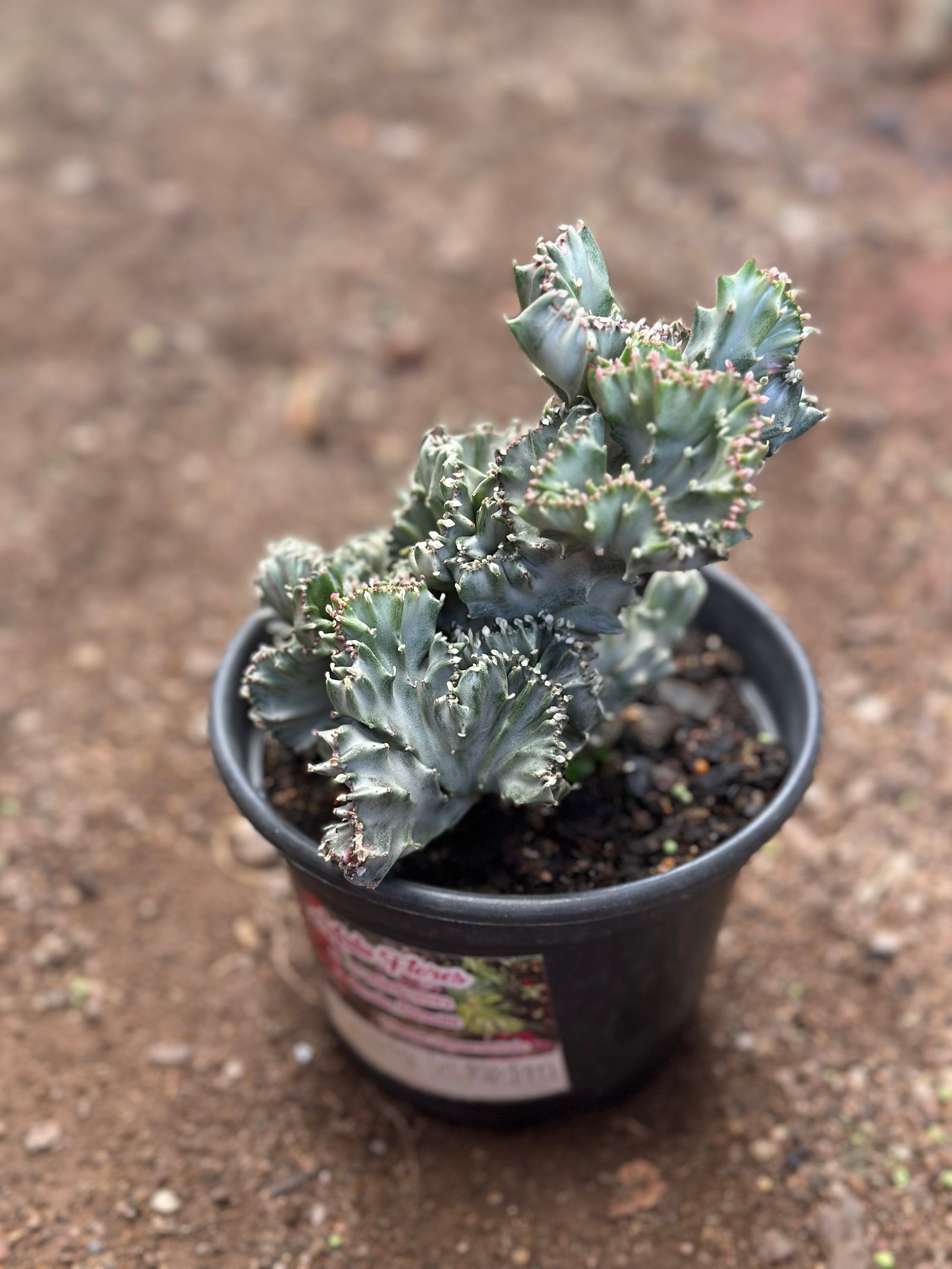 Cacto monstro prata (Euphorbia Lactea cristata variegata)